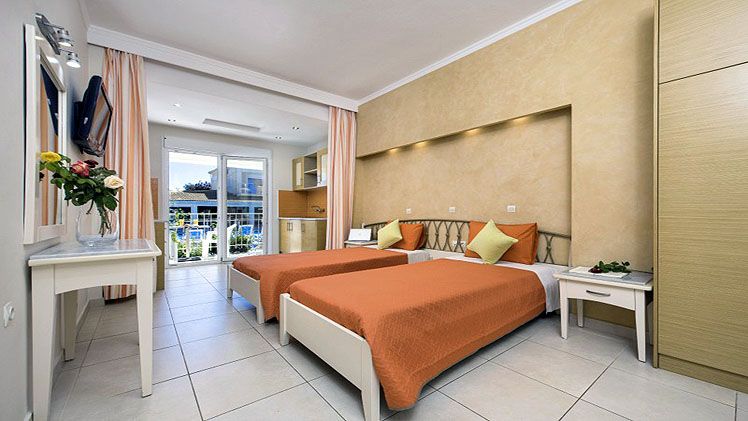 Discover bright, comfortable rooms at Kavos Plaza Hotel in Kavos, Corfu, designed for relaxed beachside holidays. Each room features air conditioning, a private balcony or terrace, and an en-suite bathroom with shower. Guests enjoy free Wi‑Fi, a flat-screen TV, and a small fridge for refreshments. Daily housekeeping keeps everything fresh, while blackout curtains and quality bedding support a restful night's sleep. Whether you are travelling as a couple, with friends, or solo, our rooms offer a welcoming base just a short walk from the sea and local nightlife.